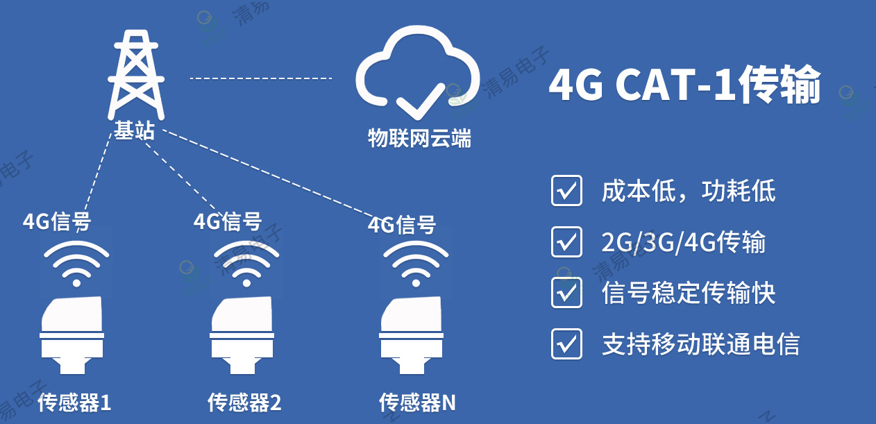 采用4G CAT-1无线传输,具备远距离传输能力,即使在偏远地区或复杂环境中,也能确保数据稳定传输。