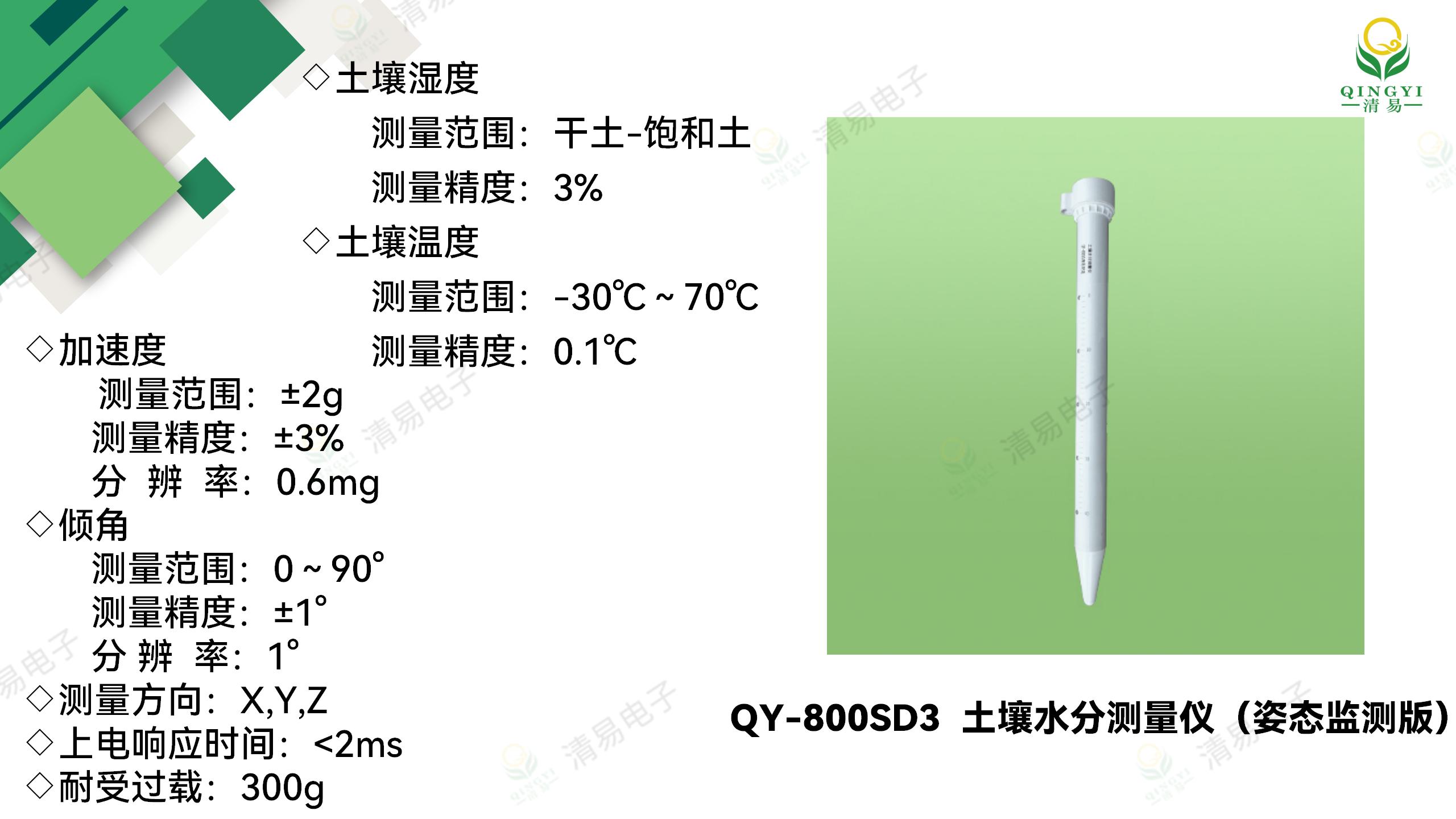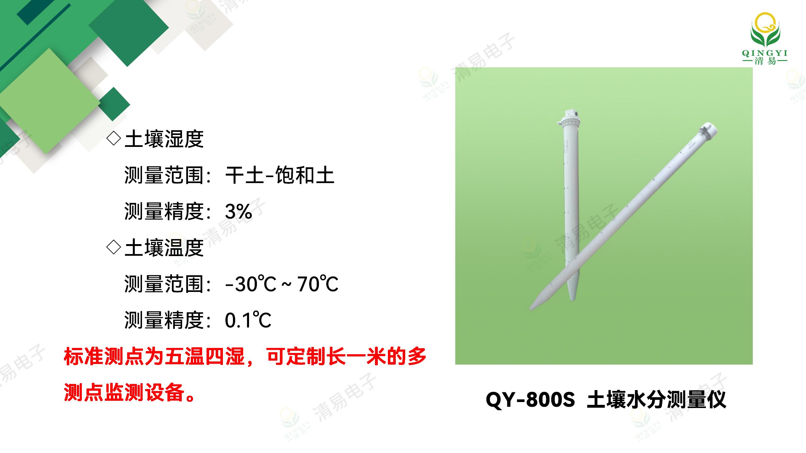 清易电子生产的QY-800S 土壤水分测量仪就是一款为观测土壤水分而研发的监测设备,采用分层设点的观测结构,观测相对应范围内的土壤温度、土壤水分、土壤电导率、土壤盐分等要素进行动态观测,而且是进行快速、准确、全面的观测,让人们实现对土壤的感知。